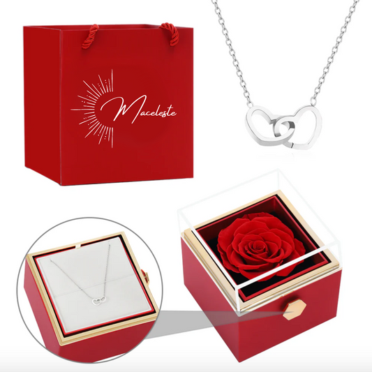 Coffret Rose Eternelle - Collier Coeurliés Personnalisable